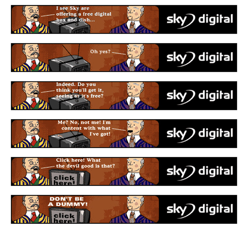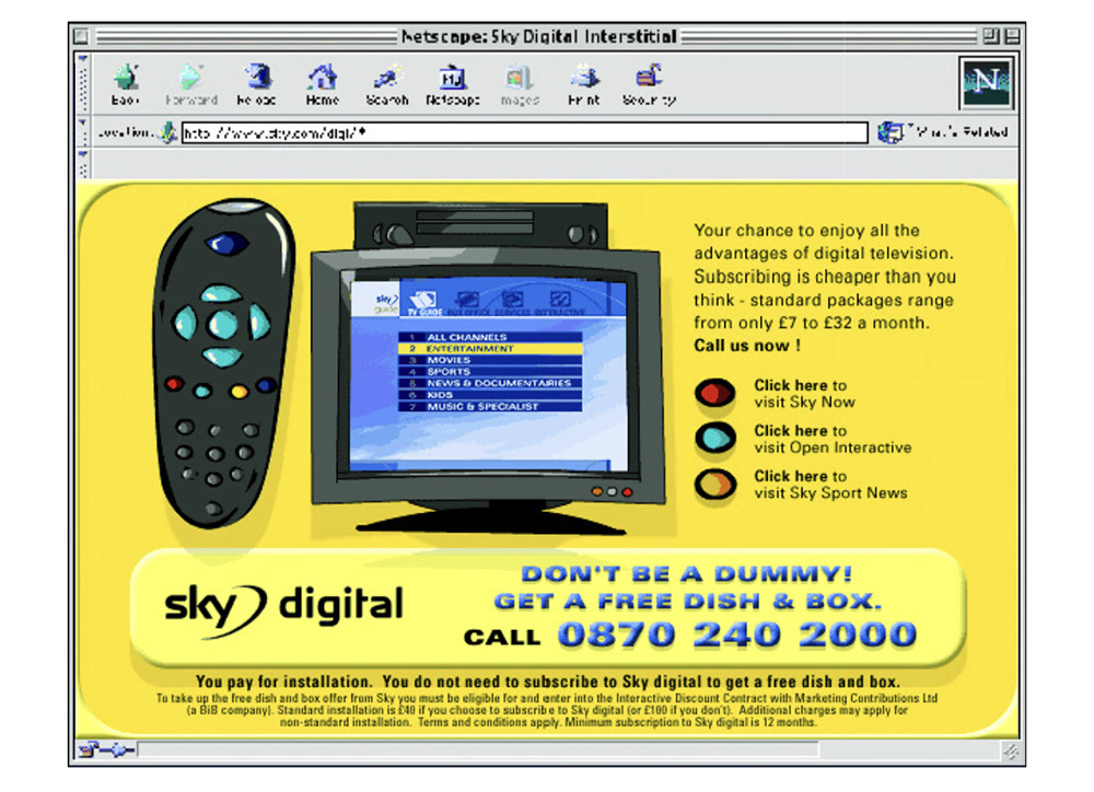 Sky was my first client account at pioneering global digital agency Profero. I worked on ideas, design and production of online campaigns that launched Sky Digital across the UK. These campaigns won numerous awards for their innovation at a time when online campaigns were in their infancy. Achievements include: - Football game within a banner. Pre-Flash, let alone HTML5, the ad was java-coded, and restricted to a maximum 12KB file-size. - Flash-based website, created within 3 months of the release of the technology, for Sky production 'Tube Tales'. The site was live and fully functional for 17 years, until Flash was no longer supported. Leaving Profero in 2003, I continued to work on occasional innovative campaign design and production projects for Sky until 2012.